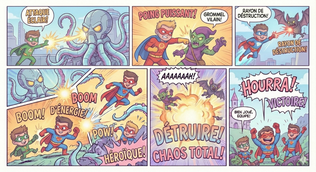 Créez une bande dessinée unique avec votre famille. Uploadez vos photos, choisissez votre aventure et recevez votre BD en quelques minutes.